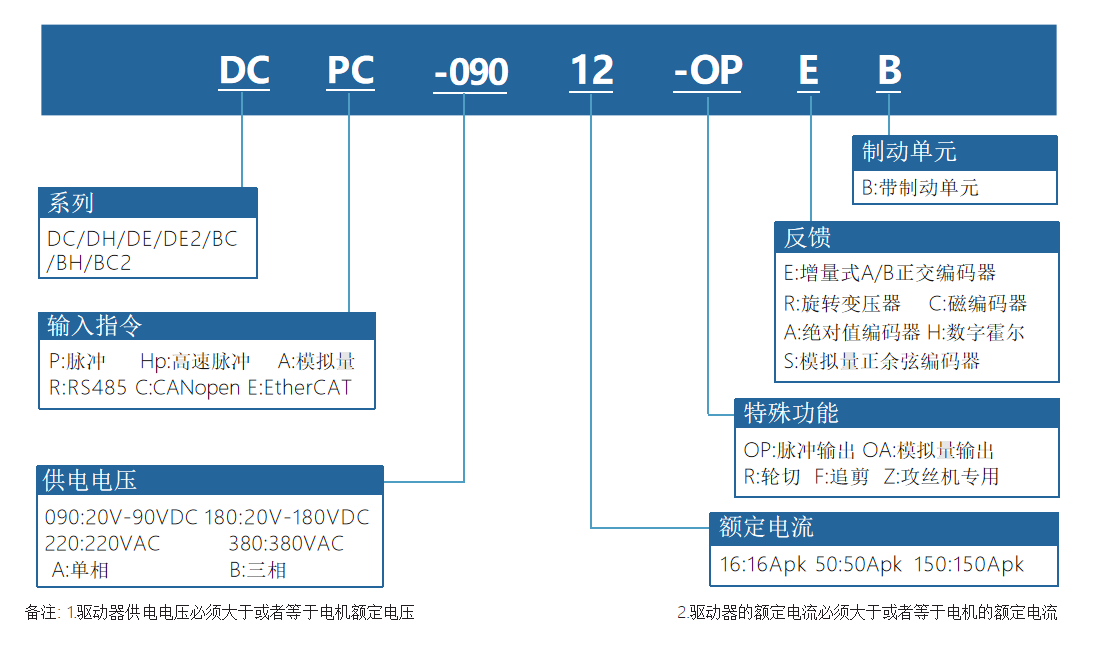 1. 系列(DC代表:直流伺服 DH:交流伺服 DE:絕對值直流伺服 DE2:直流雙驅(qū)伺服 BC:直流無刷 BH:交流無刷 BC2:直流雙驅(qū)無刷這七種系列)。