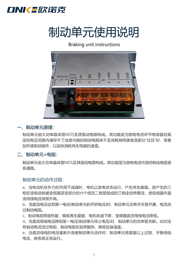 制動單元原理:制動單元由大功率晶體管MOS及其驅(qū)動電路構成。其功能是為放電電流環(huán)節(jié)電容器在規(guī)定的電壓范圍內(nèi)儲存不了或者內(nèi)接的制動電阻來不及消耗掉而使直流部分“過壓”時,需要加外接制動組件,以加快消耗再生電能的速度。