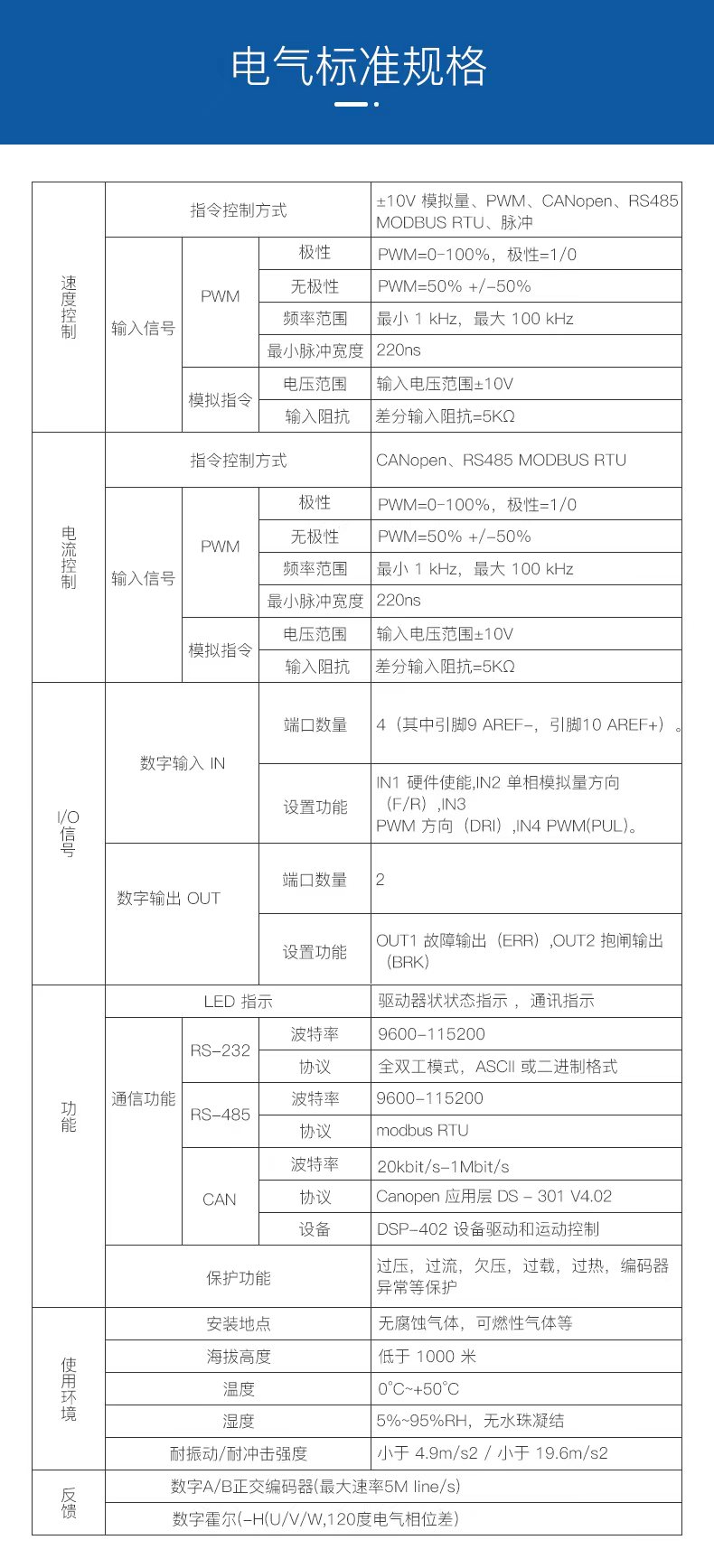 ?CAN2.0 局域總線(xiàn),兼容 CANopen DS-402,波特率最高 1MHz ;