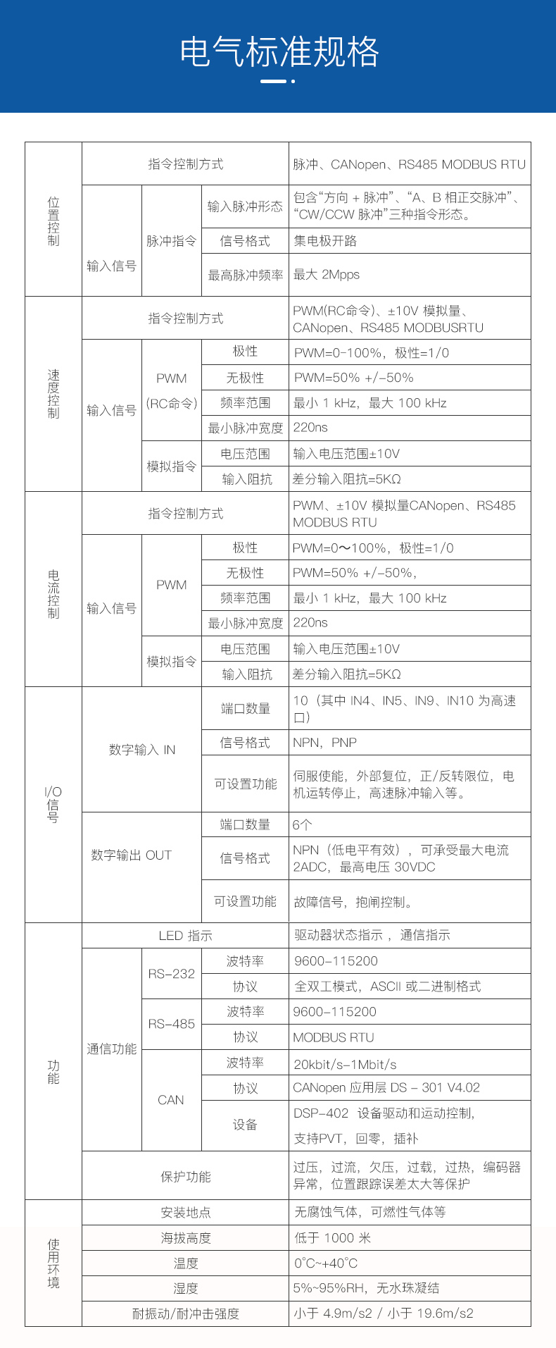 ?CAN2.0 局域總線,兼容 CANopen DS-402,波特率最高 1MHz ;