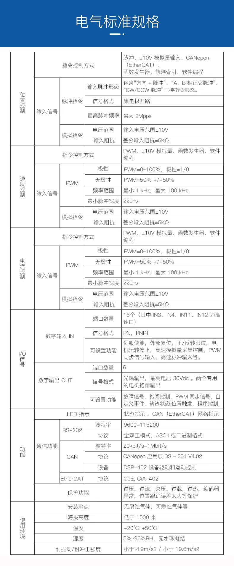 ?CAN2.0 局域總線,兼容 CANopen DS-402,波特率最高 1MHz ;