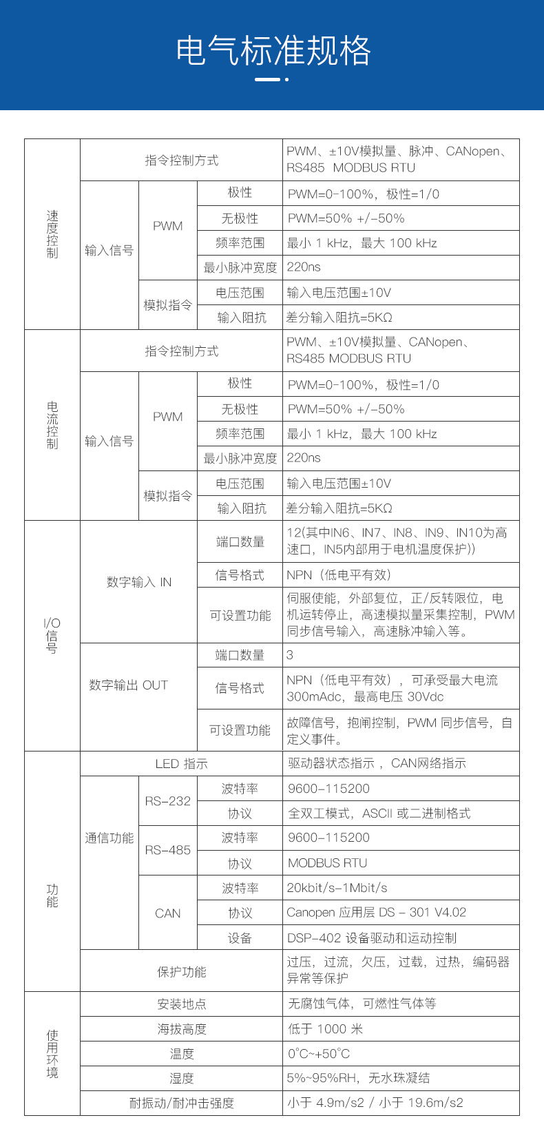 ?CAN2.0 局域總線,兼容 CANopen DS-402,波特率最高 1MHz ;